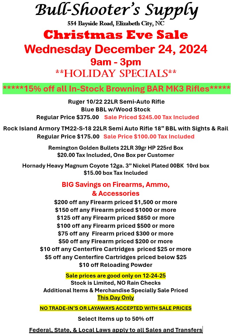 Wednesday 12/24 9am – 3pm Annual Christmas Eve Sale